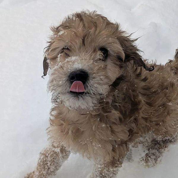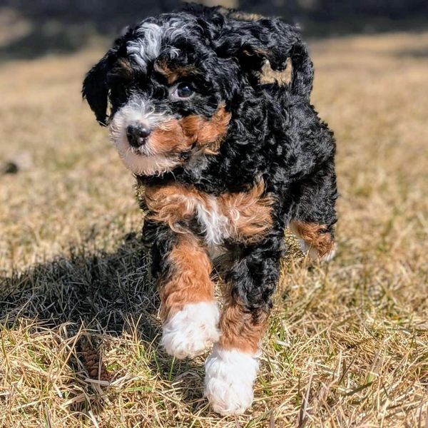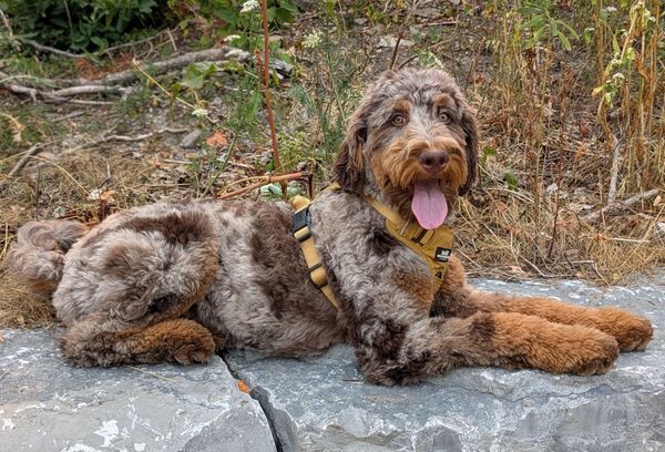 Little Violet is a delightful little cutie from Mabel & Vinny's Soda-Pup litter. She is a cheeky, confident and human-focused pup who I expect to reach about 20lbs or so full grown. She is about 15% Bernese Mountain Dog, and is going to have a gorgeous low-shedding, loose curly coat. She and her mama Mabel are loving together with their amazing guardian family! I am so looking forward to seeing what the future holds with this awesome little pup.