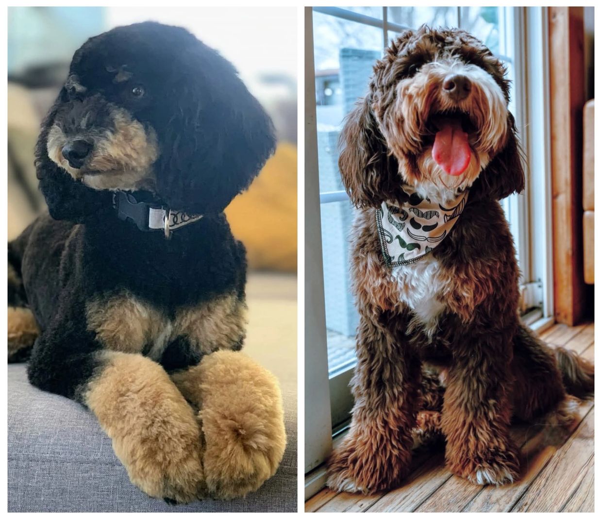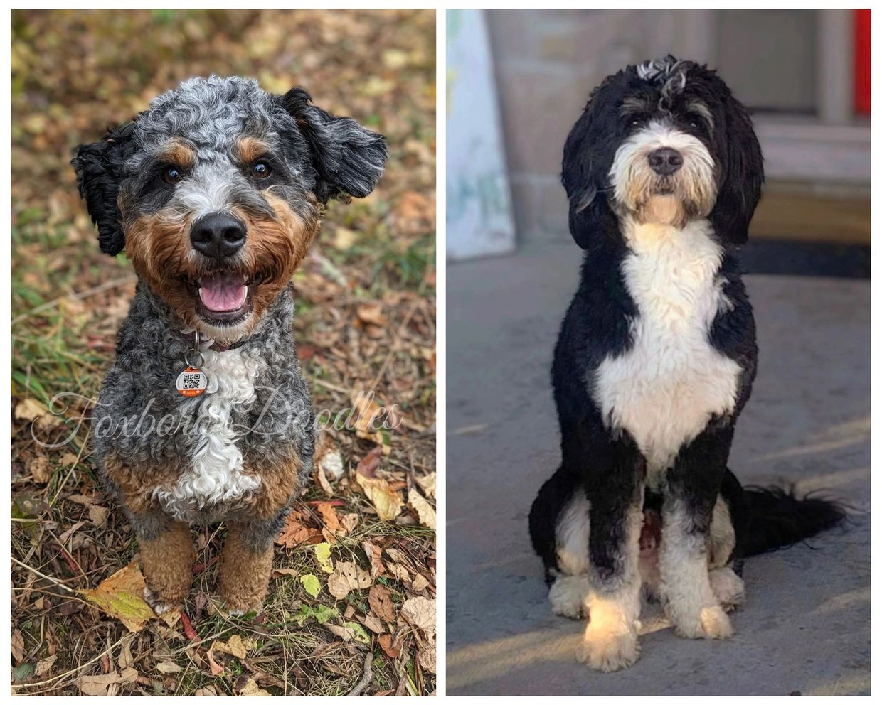 We have chosen our amazing Ezra for Percy's second litter! These two cuties will be producing gorgeous Tiny/Mini Bernedoodle puppies that are expected to mature between 20 and 40lbs full grown on average. They will be about 15% Bernese Mountain Dog with incredibly social, goofy, family-friendly temperaments. We'll have a great mix of wavy and curly coat types with this pairing. Very low to fully non-shedding is expected with this bunch!
