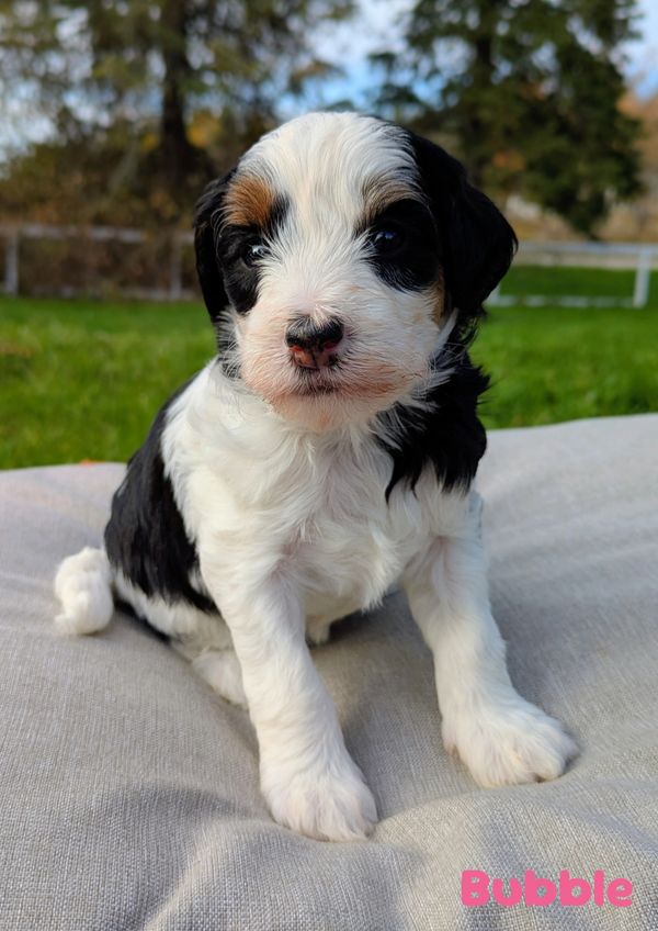 We are excited to welcome Mabel's second litter with Vinny from Pinecrest Doodles! We expect these Tiny Bernedoodle pups to reach approximately 20-30lbs full grown, with either wavy or curly coats. Breed percentage for these multi-generational little cuties will be about 15% Bernese Mountain Dog. We expect another amazing bunch of human-focused, social, ADORABLE pups with this pairing! Selection & Go-Home Weekend is November 15/16th. I will not know specific puppy reservations before that weekend.